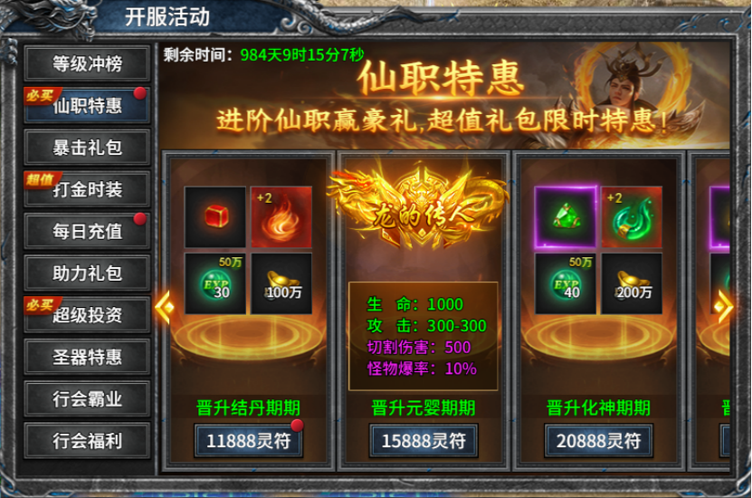 2、仙職特惠:提升仙職即可購買超值豪禮