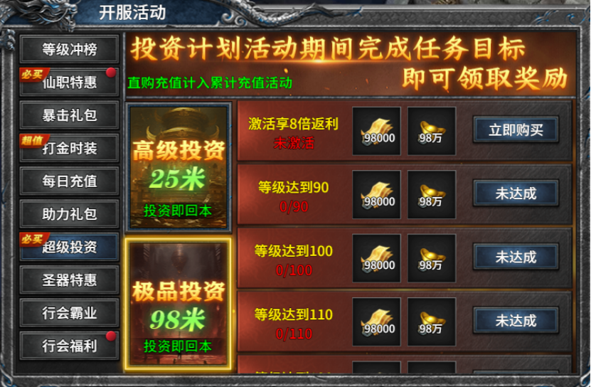 7、超級投資:投資即回本,25米投資可獲得3倍靈符返利、98米投資可獲得8倍靈符返利