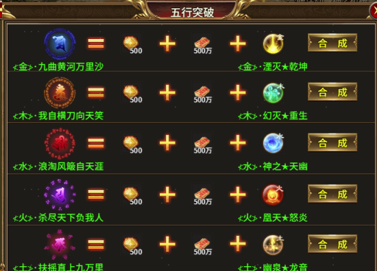 6.五行魔像:消耗四圣獸神石提升等級、此處是進入下一大陸必備條件,需全身12級!